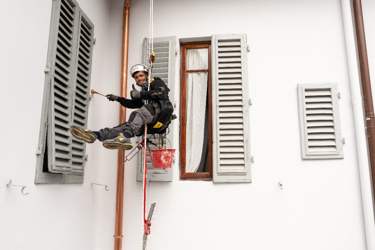 Gli operatori specializzati di Evoluzionedilizia (attivi a Roma e nel Lazio), mettendo in pratica tecniche prese in prestito dall’alpinismo, senza utilizzare impalcature, si caleranno sulla facciata del tuo condominio tramite apposite funi, che gli permetteranno di: